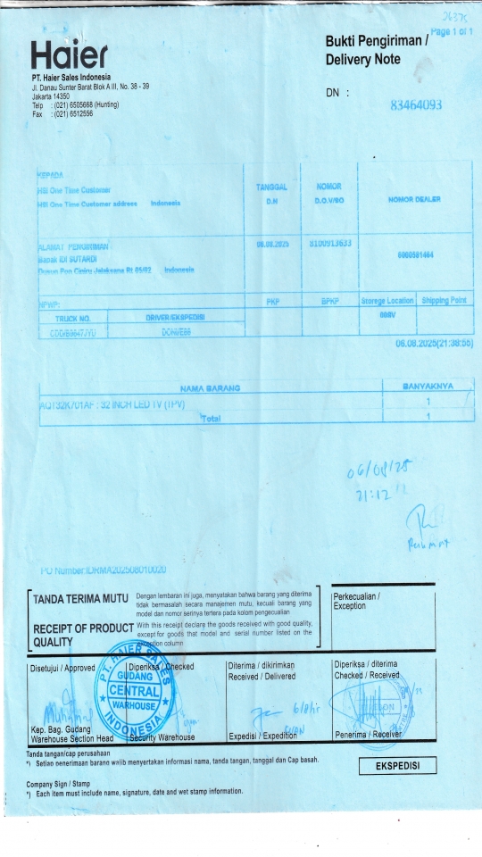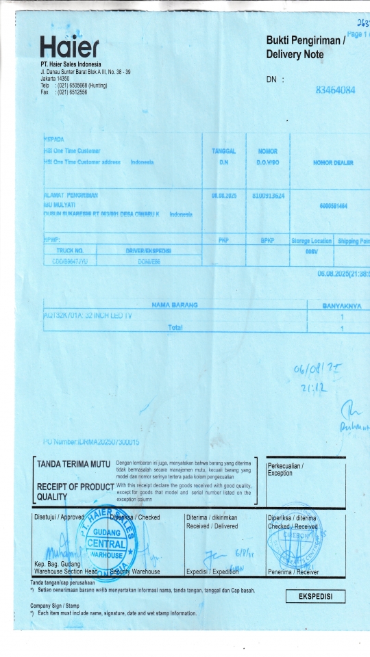 Berangkat, Tiba, Bongkar | 2025-08-07, 2025-08-07, 2025-08-07 |