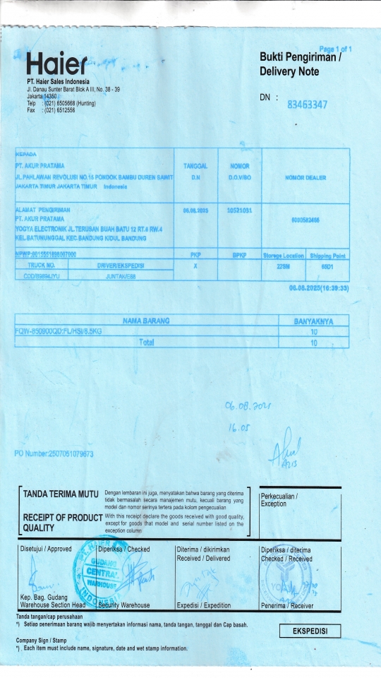 Berangkat, Tiba, Bongkar 2025-08-07, 2025-08-07, 2025-08-07