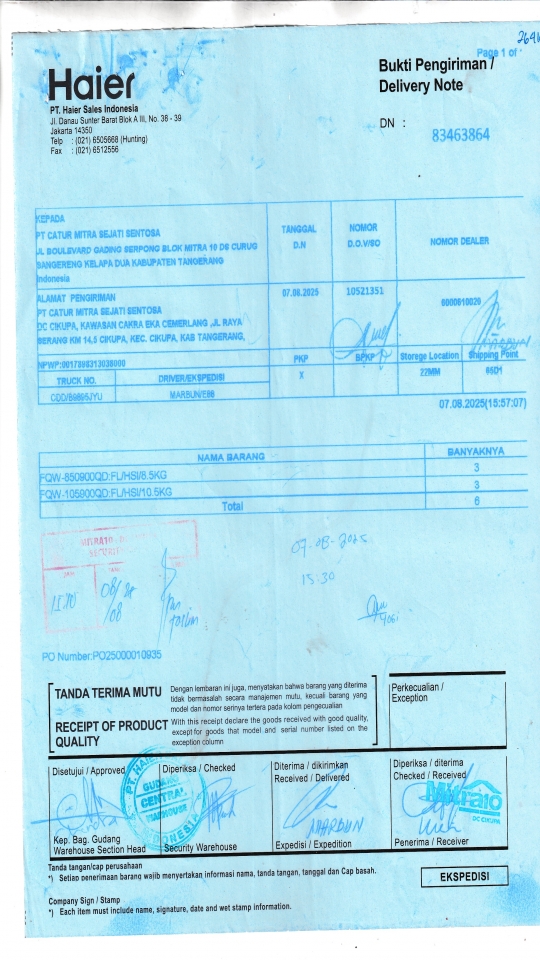 Berangkat, Tiba, Bongkar 2025-08-08, 2025-08-08, 2025-08-08