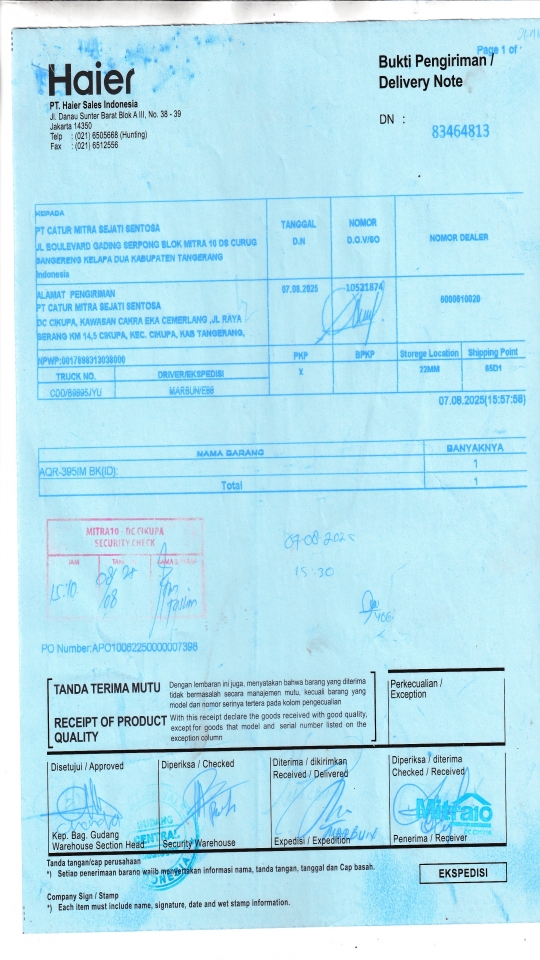 Penerima PT CATUR MITRA SEJATI SENTOSA
