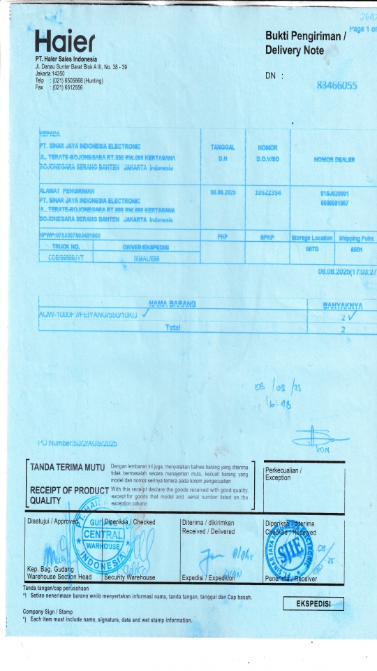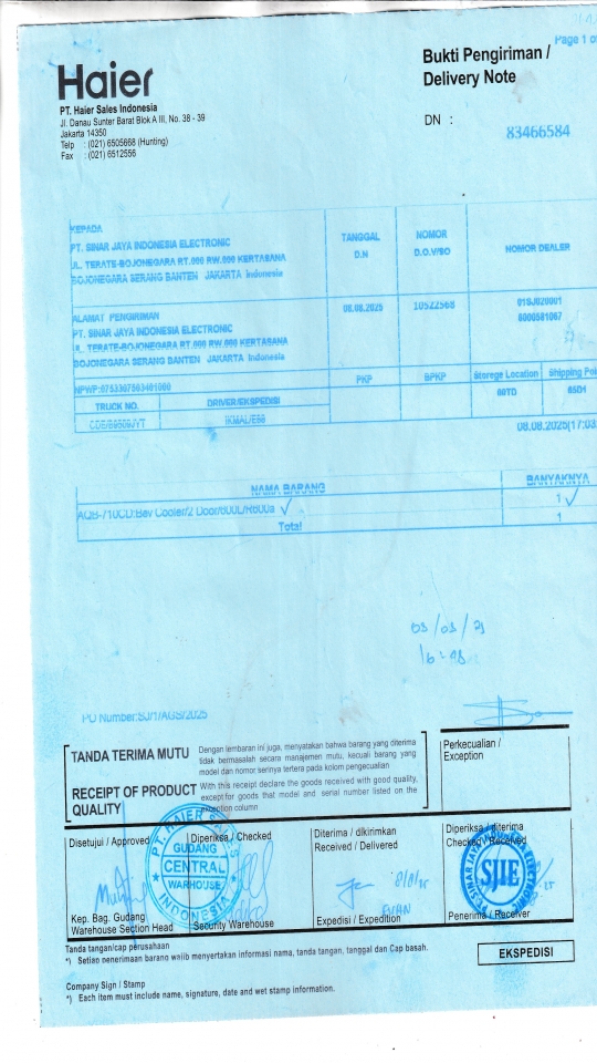 Penerima PT. SINAR JAYA INDONESIA ELECTRONIC