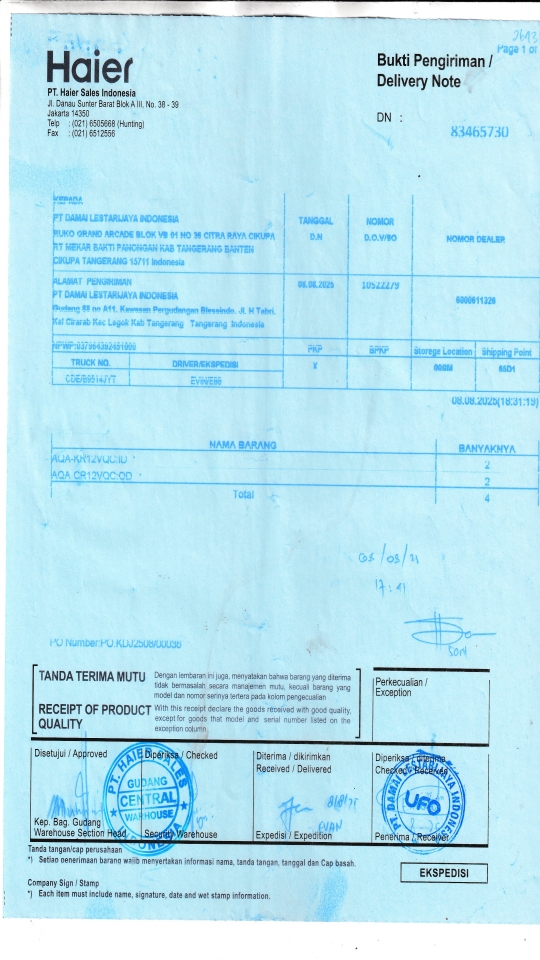 Berangkat, Tiba, Bongkar 2025-08-09, 2025-08-09, 2025-08-09