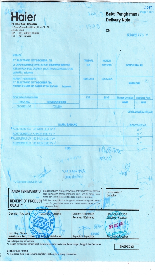 Penerima PT. ELECTRONIC CITY INDONESIA Tbk