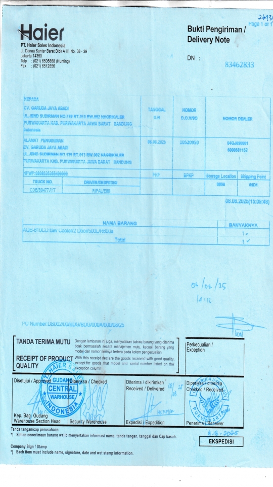Penerima CV. GARUDA JAYA ABADI