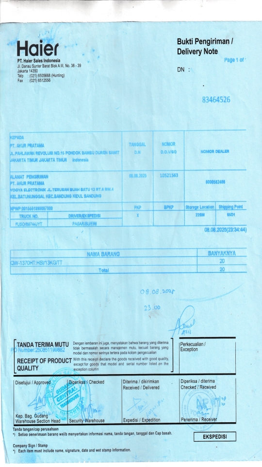 Berangkat, Tiba, Bongkar 2025-08-09, 2025-08-09, 2025-08-09