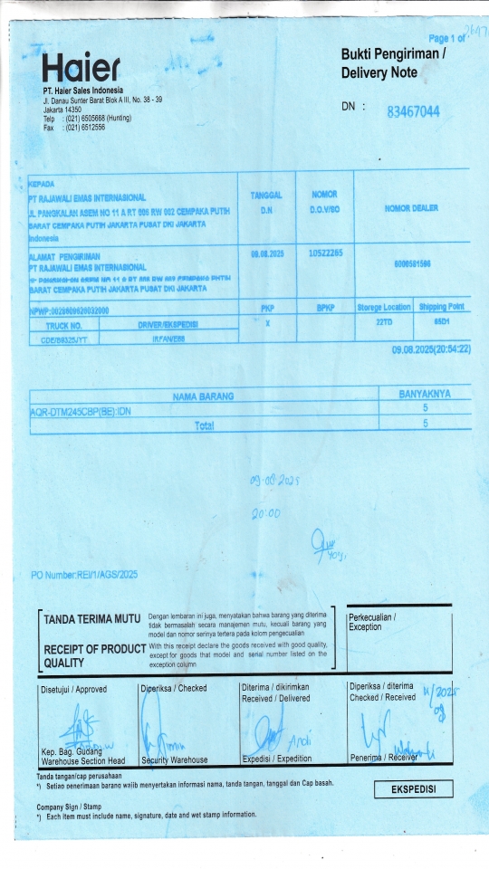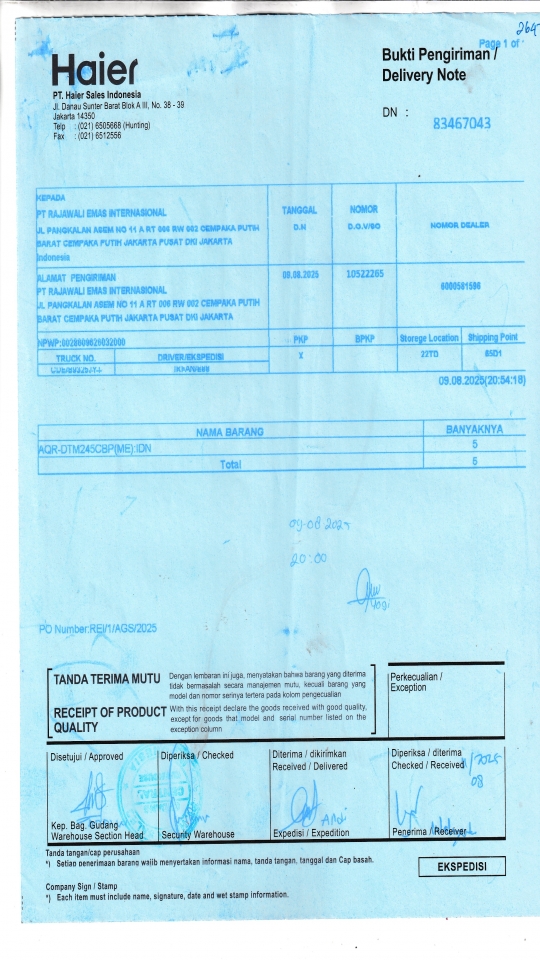 Penerima PT RAJAWALI EMAS INTERNASIONAL