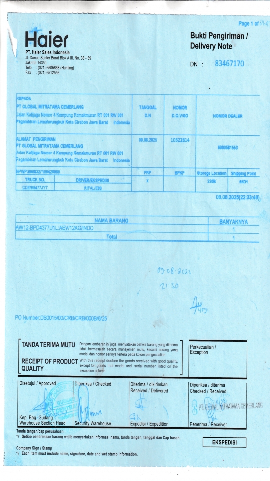 Penerima PT GLOBAL MITRATAMA CEMERLANG
