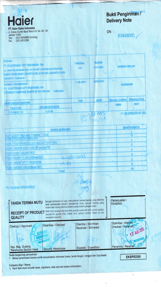 PT. ELECTRONIC CITY INDONESIA Tbk CITEREUP KAMPUNG SABUR RT 001 RW 006 ID |
