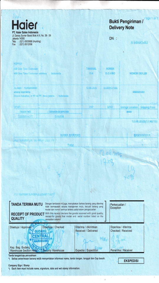 Berangkat, Tiba, Bongkar | 2025-08-13, 2025-08-13, 2025-08-13 |