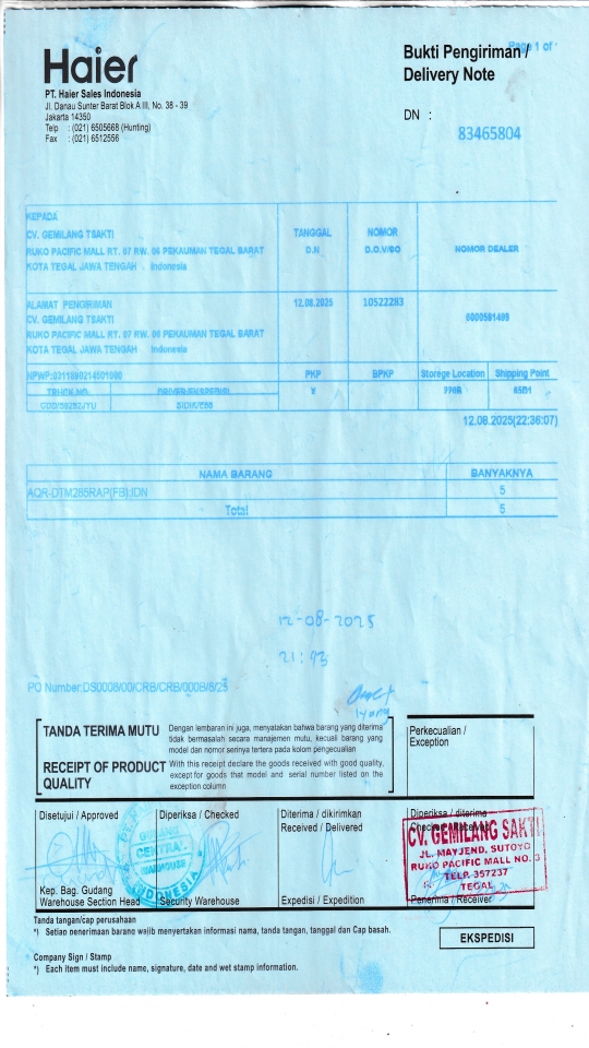 Customer PT. HAIER SALES INDONESIA