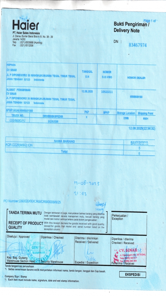 Berangkat, Tiba, Bongkar | 2025-08-13, 2025-08-13, 2025-08-13 |