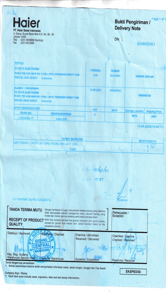 Berangkat, Tiba, Bongkar 2025-08-13, 2025-08-13, 2025-08-13