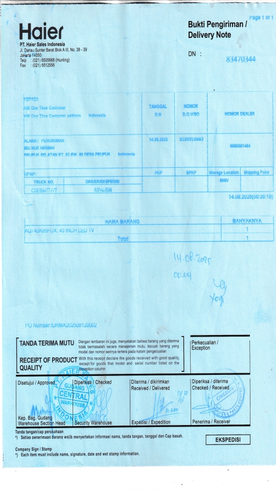 Berangkat, Tiba, Bongkar | 2025-08-14, 2025-08-14, 2025-08-14 |