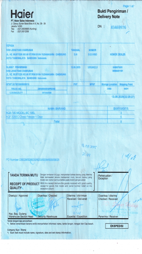 Berangkat, Tiba, Bongkar 2025-08-14, 2025-08-14, 2025-08-14