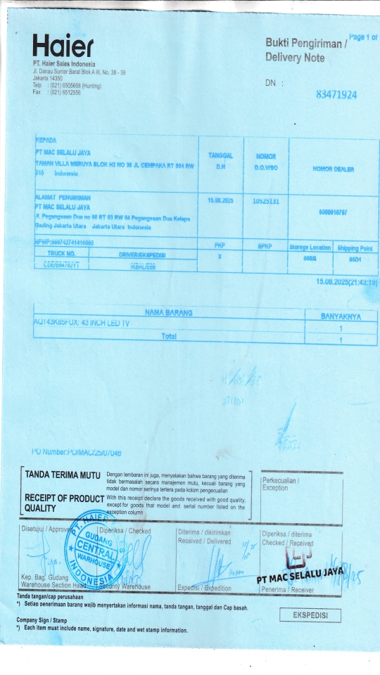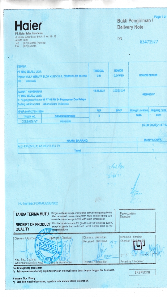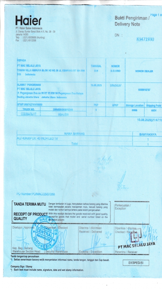 PT. HAIER SALES INDONESIA |