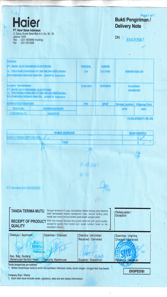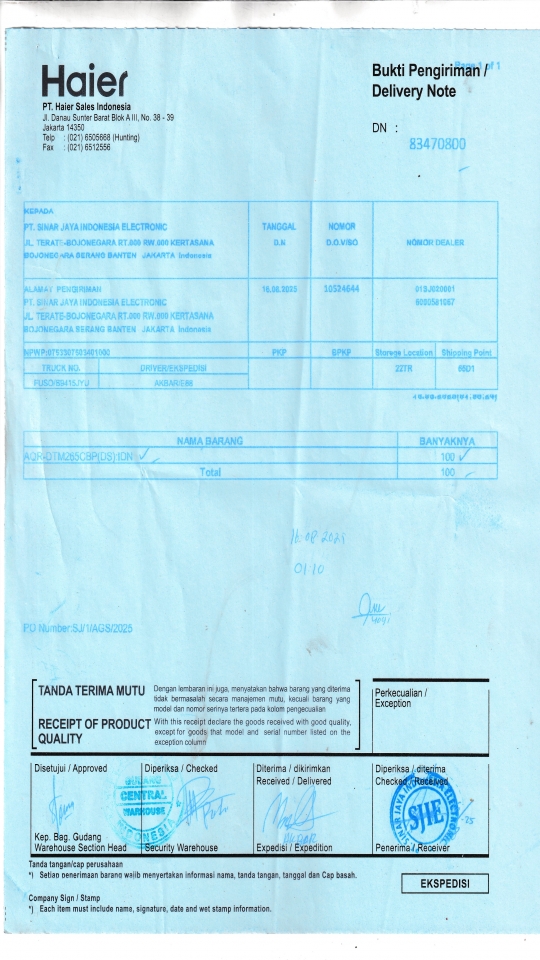PT. SINAR JAYA INDONESIA ELECTRONIC JL. TERATE-BOJONEGARA RT.000 RW.000 KERTASANA BOJONEGARA SERANG BANTEN JAKARTA ID |