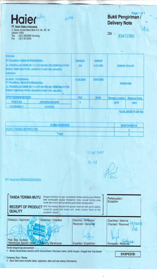 Berangkat, Tiba, Bongkar 2025-08-19, 2025-08-19, 2025-08-19