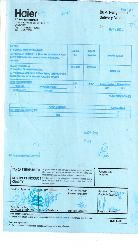 Penerima PT RAJAWALI EMAS INTERNASIONAL
