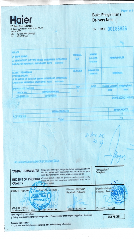 | Alamat | CV SINAR AGUNG JL SILIWANGI NO 35 RT RW 039 005 JATIBARANG JATIBARANG KABUPATEN INDRAMAYU JAWA BARAT 45273 ID |