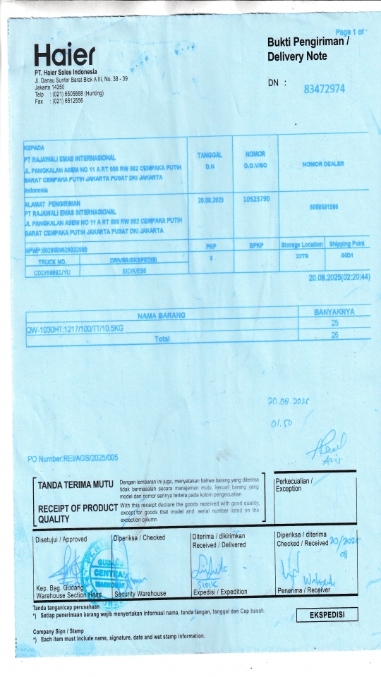 Berangkat, Tiba, Bongkar 2025-08-20, 2025-08-20, 2025-08-20