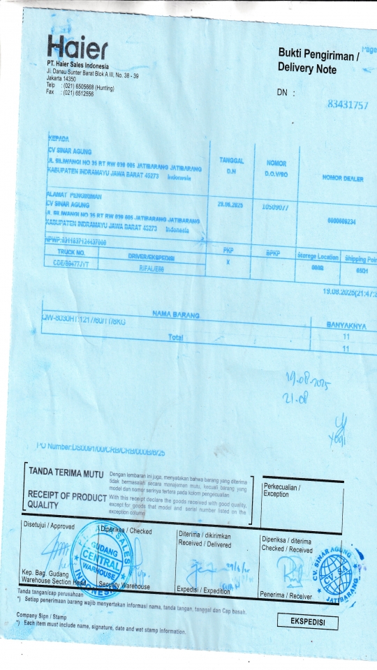 CV SINAR AGUNG JL SILIWANGI NO 35 RT RW 039 005 JATIBARANG JATIBARANG KABUPATEN INDRAMAYU JAWA BARAT 45273 ID |