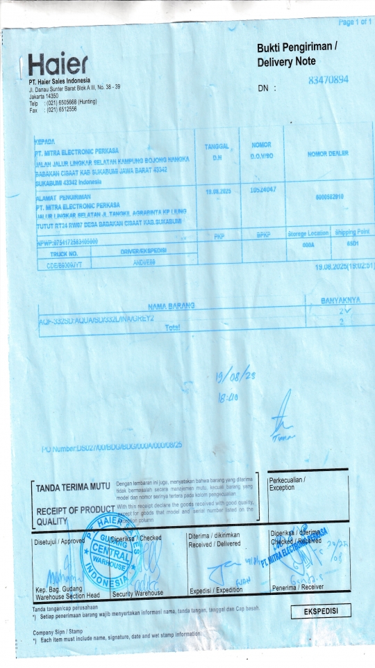 Penerima PT. MITRA ELECTRONIC PERKASA