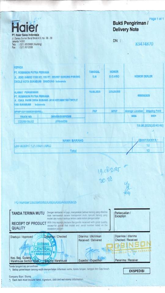Penerima PT. ROBINSON PUTRA PERKASA