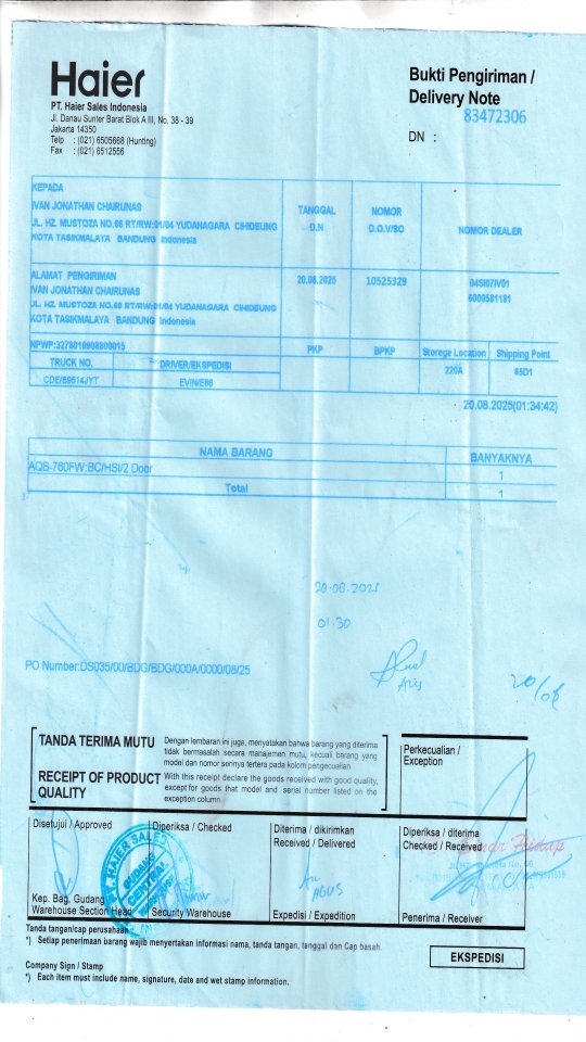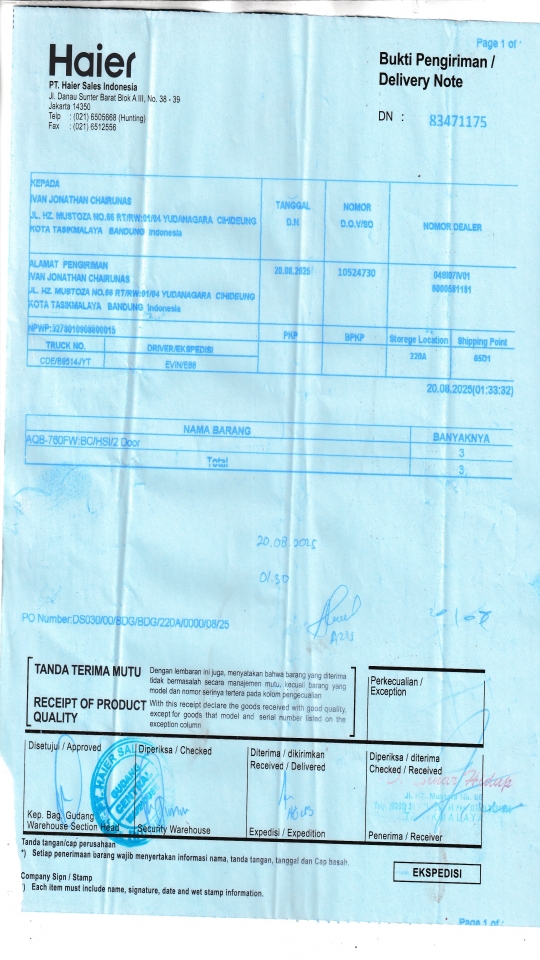 IVAN JONATHAN CHAIRUNAS JL. HZ. MUSTOZA NO.66 RT/RW:01/04 YUDANAGARA CIHIDEUNG KOTA TASIKMALAYA BANDUNG ID |