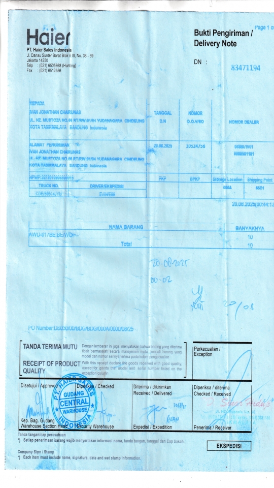 Customer PT. HAIER SALES INDONESIA