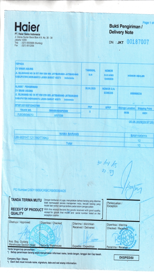 Penerima | CV SINAR AGUNG |