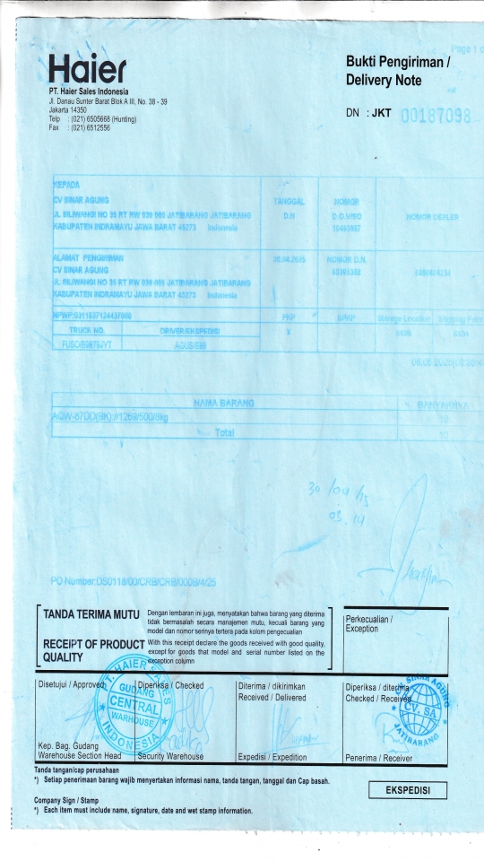 Nama Driver | MOHAMAD ROYHAN AZIZ |