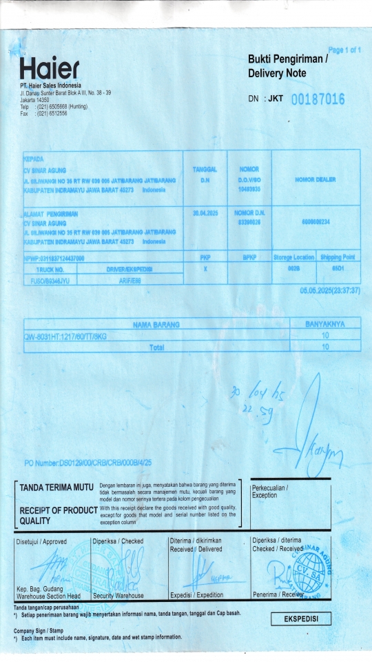 Penerima | CV SINAR AGUNG |