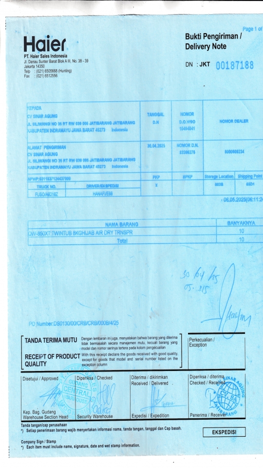 Penerima | CV SINAR AGUNG |