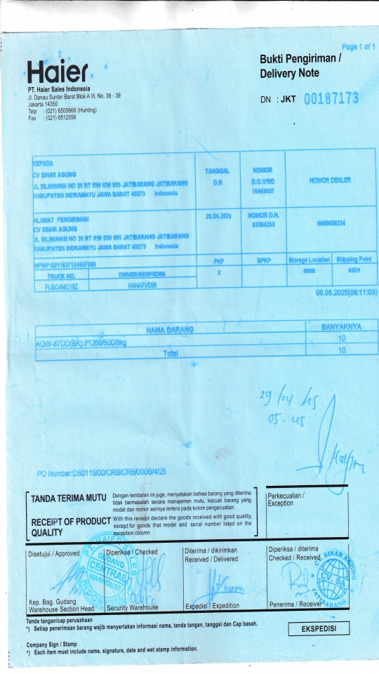 Penerima | CV SINAR AGUNG |