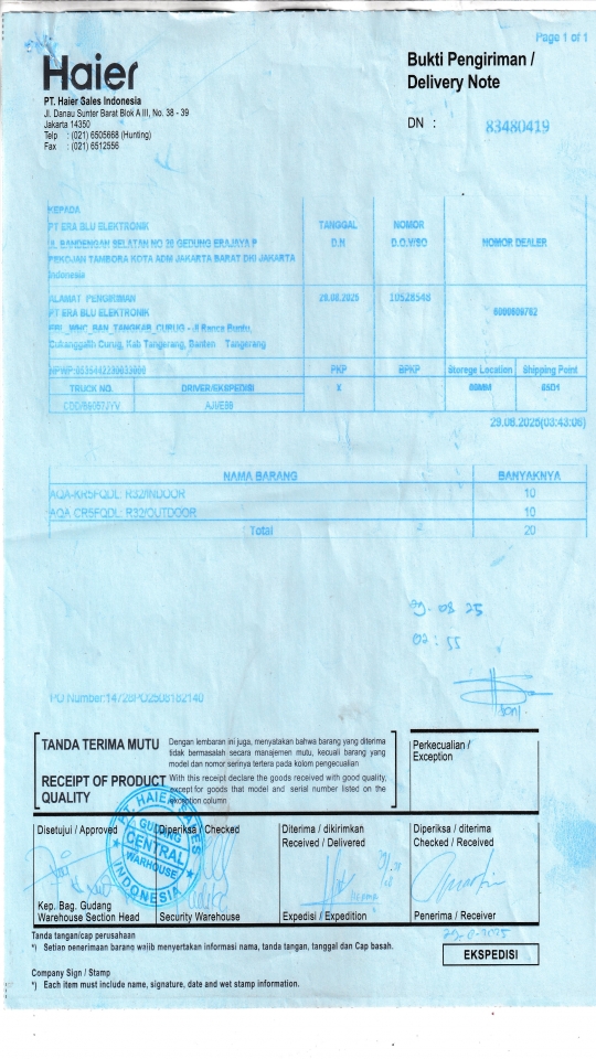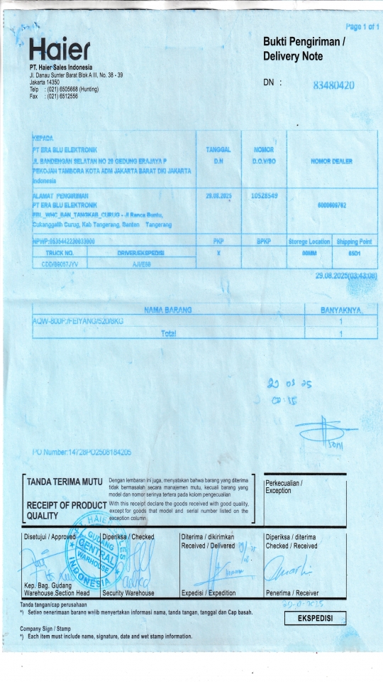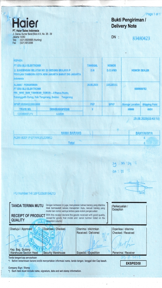 Berangkat, Tiba, Bongkar 2025-08-29, 2025-08-29, 2025-08-29