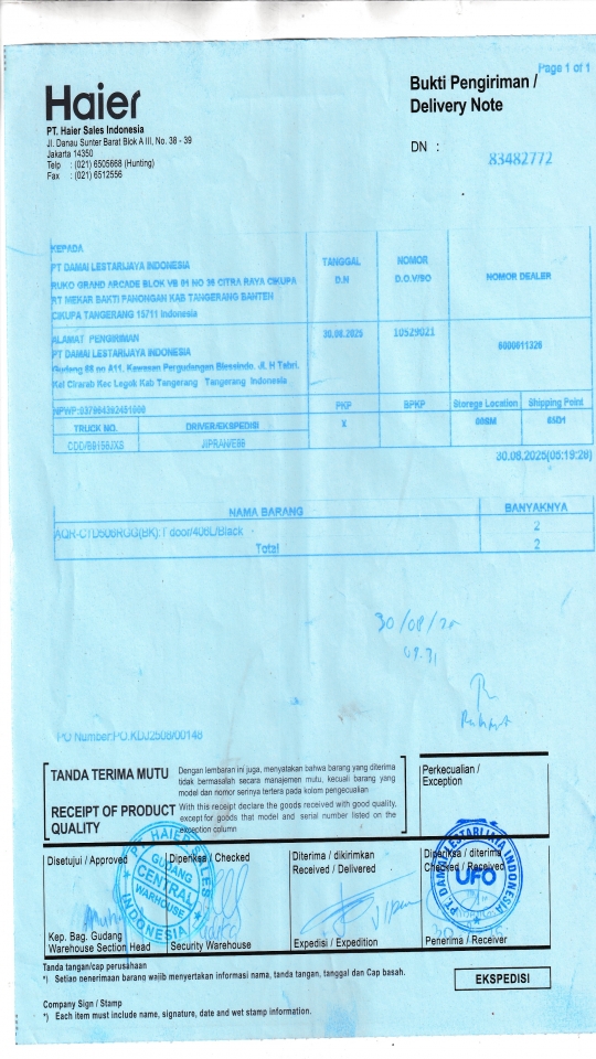 PT DAMAI LESTARIJAYA INDONESIA Gudang 88 no A11. Kawasan Pergudangan Blessindo. Jl. H Tabri. Kel Cirarab Kec Legok Kab Tangerang Tangerang ID |