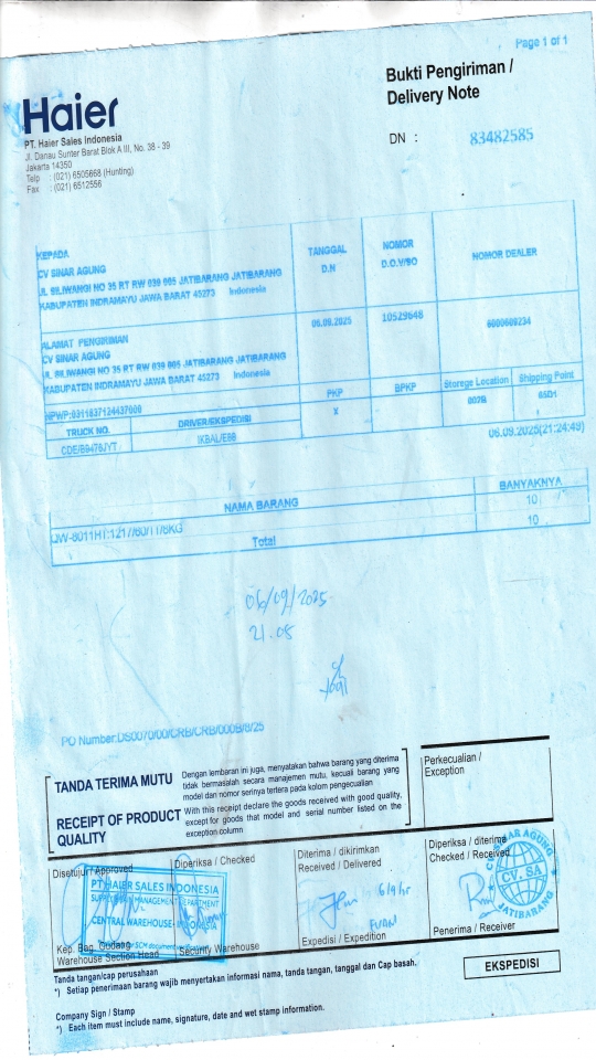 CV SINAR AGUNG JL SILIWANGI NO 35 RT RW 039 005 JATIBARANG JATIBARANG KABUPATEN INDRAMAYU JAWA BARAT 45273 ID |