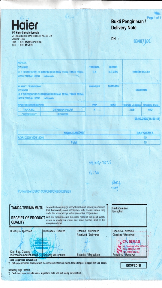 | Berangkat, Tiba, Bongkar | 2025-09-10, 2025-09-10, 2025-09-10 |