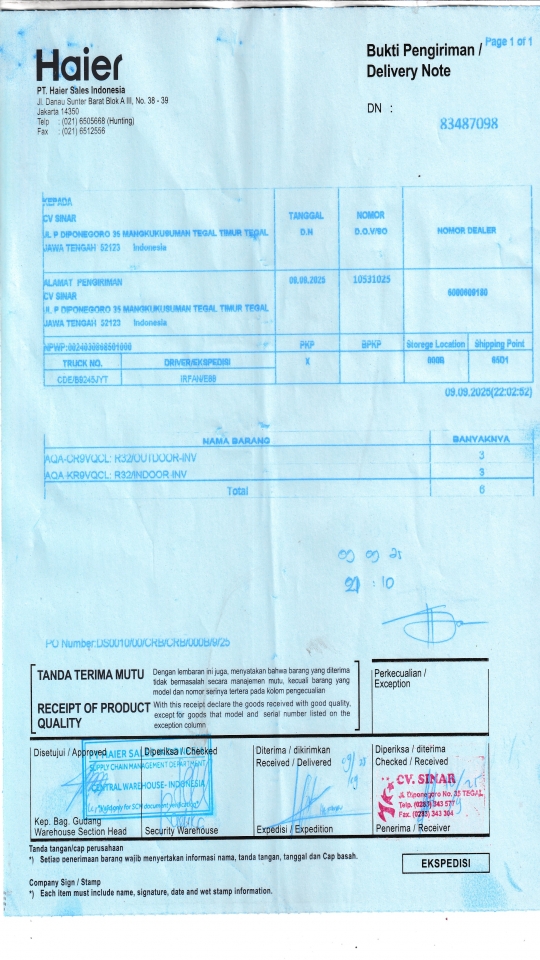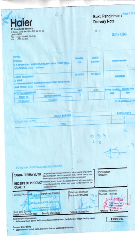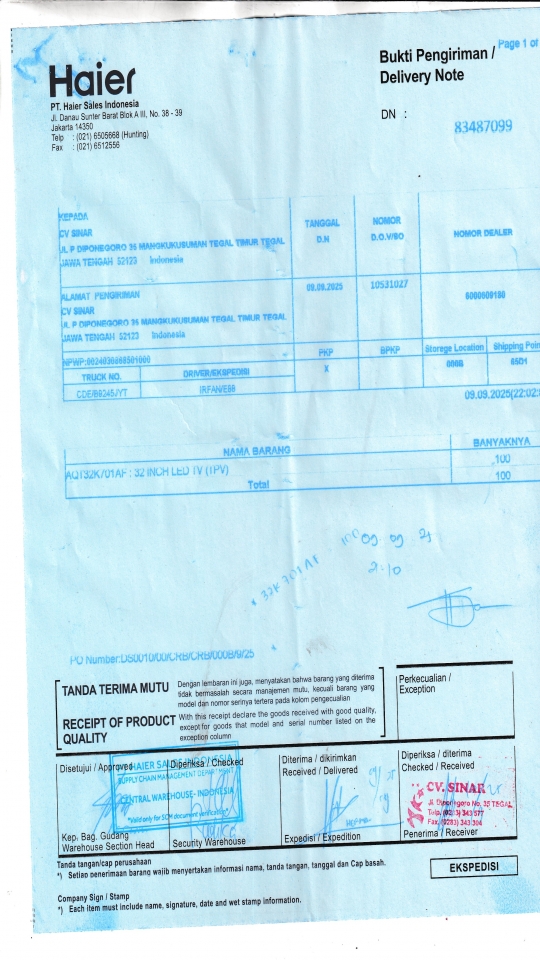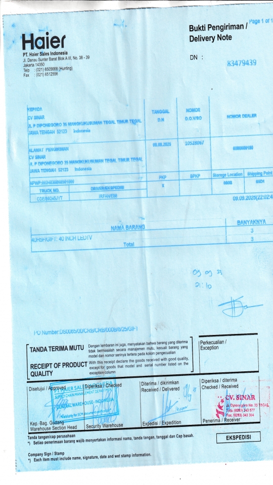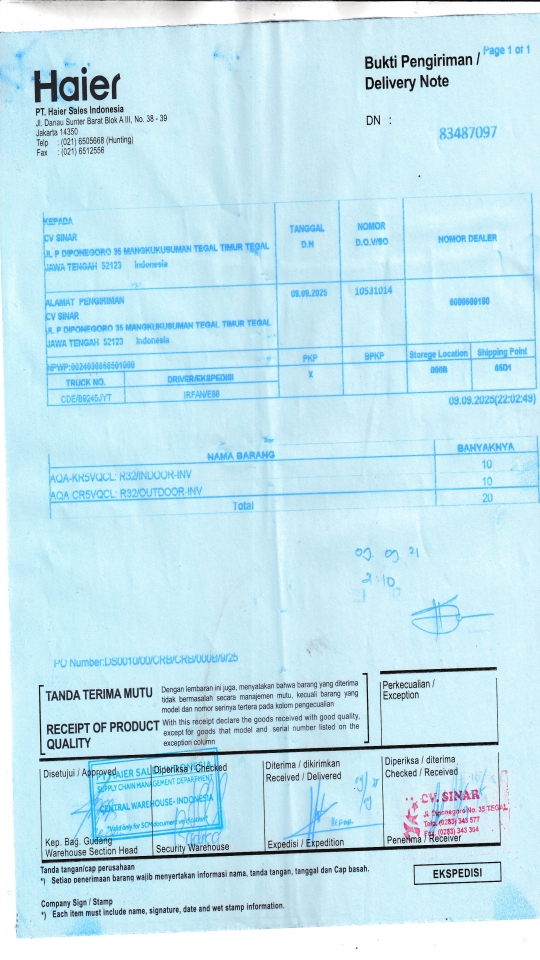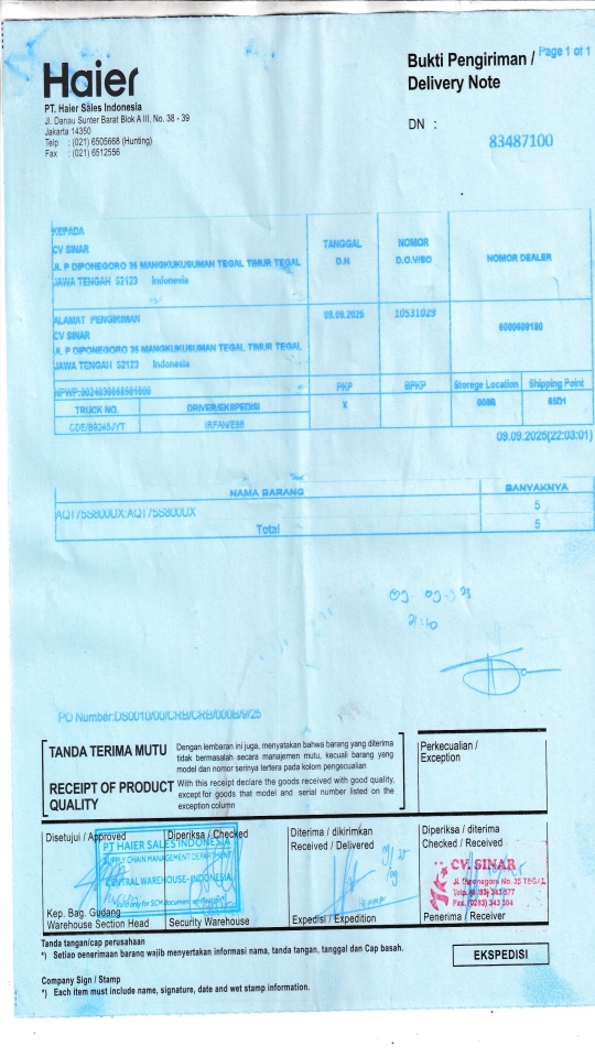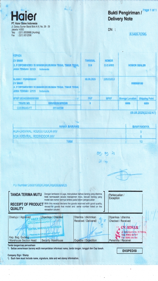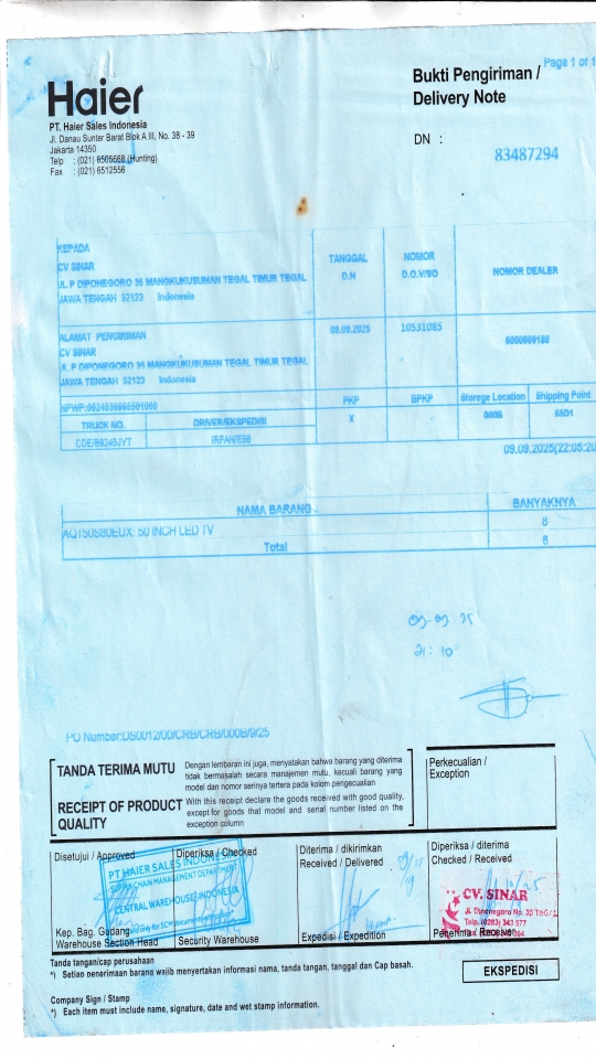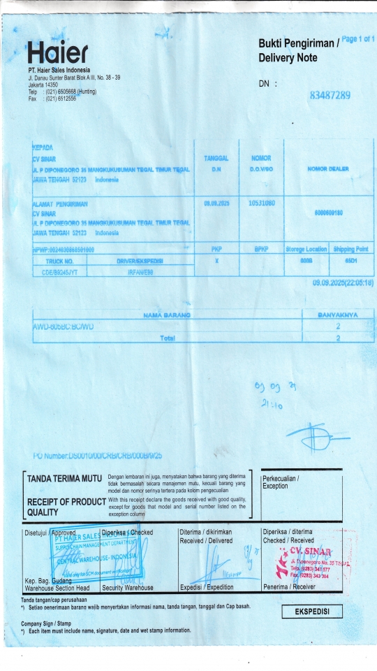 | Berangkat, Tiba, Bongkar | 2025-09-10, 2025-09-10, 2025-09-10 |