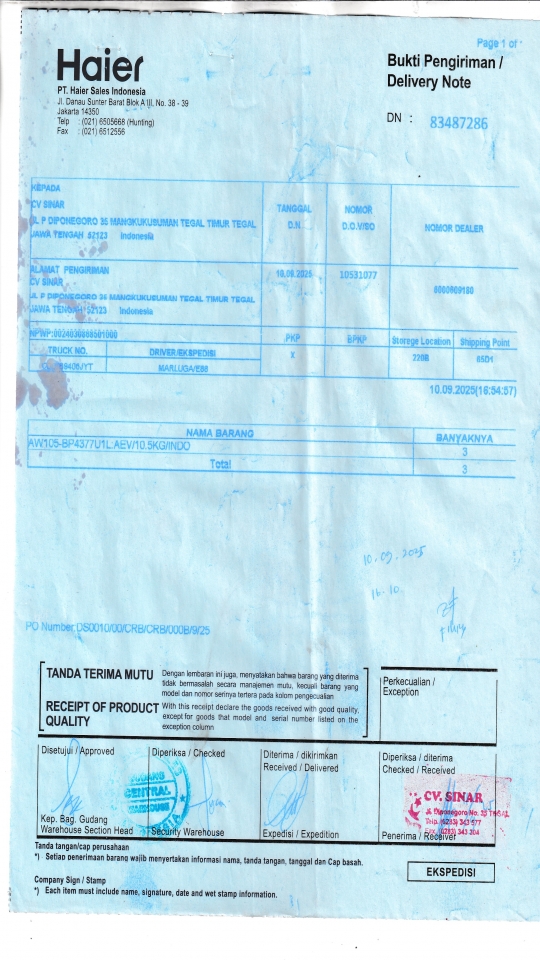 | Berangkat, Tiba, Bongkar | 2025-09-11, 2025-09-11, 2025-09-11 |