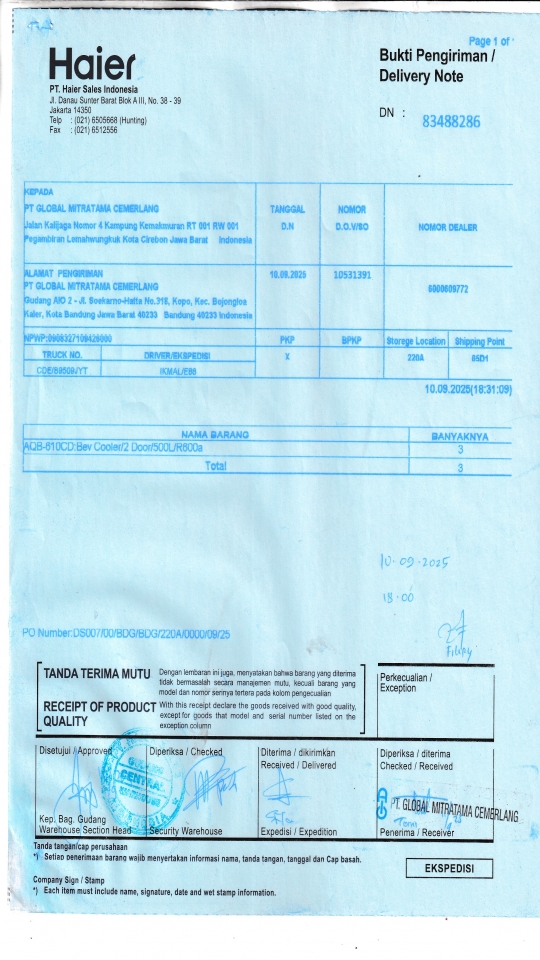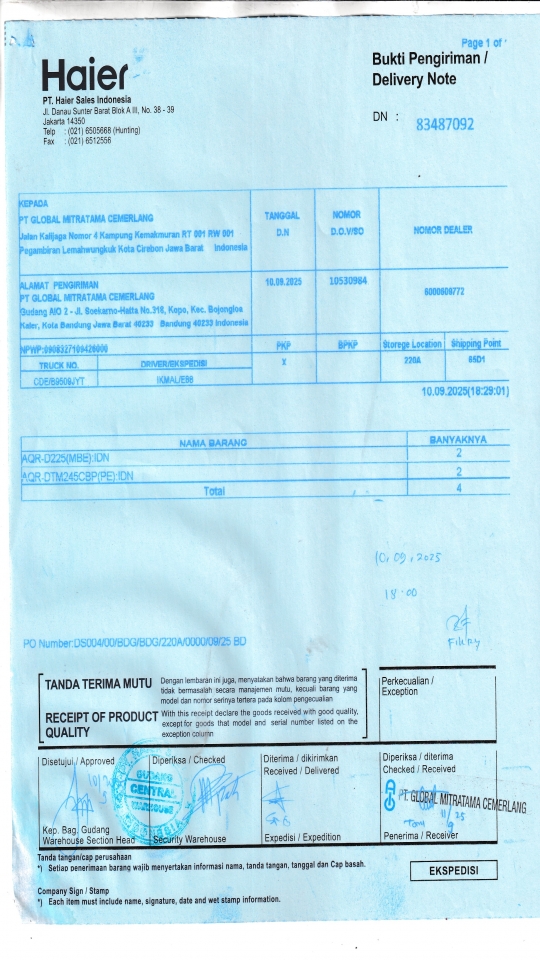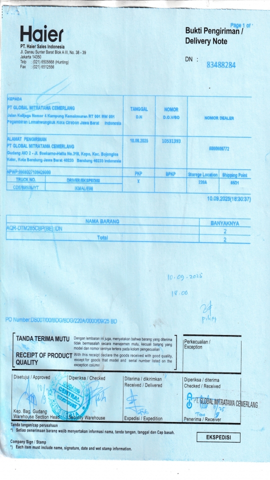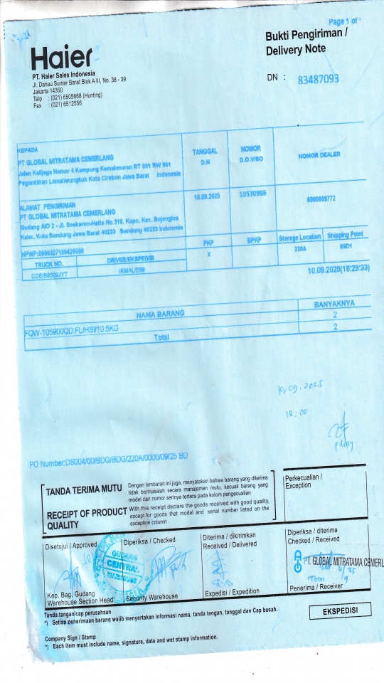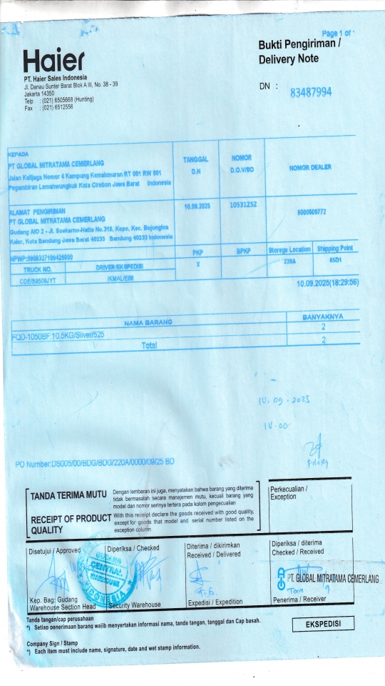 Berangkat, Tiba, Bongkar 2025-09-11, 2025-09-11, 2025-09-11
