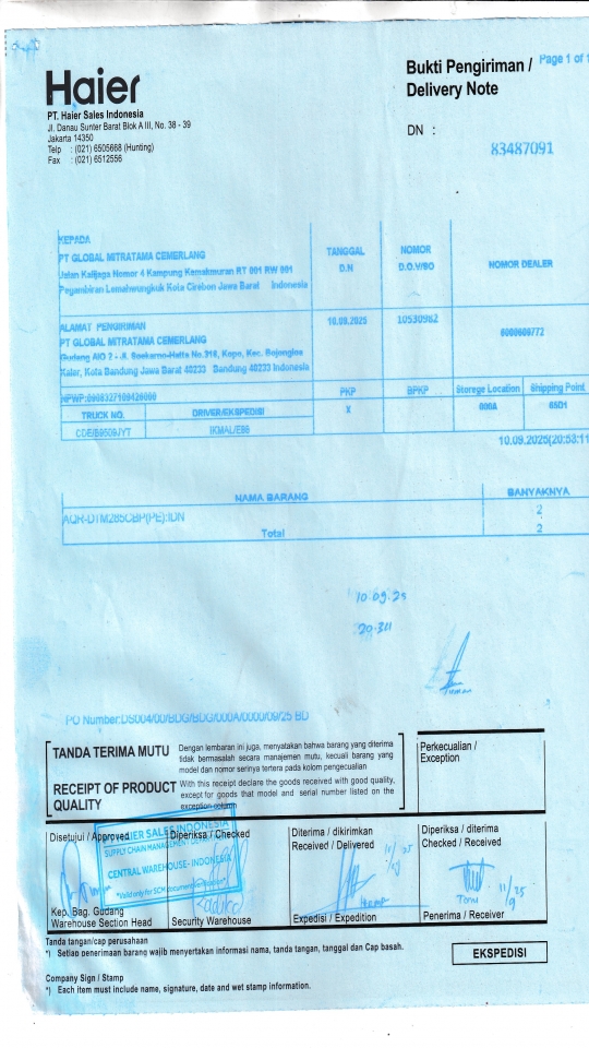 PT GLOBAL MITRATAMA CEMERLANG Gudang AIO 2 - Jl. Soekarno-Hatta No.318, Kopo, Kec. Bojongloa Kaler, Kota Bandung Jawa Barat 40233 Bandung 40233 ID |