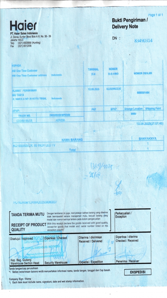 | Berangkat, Tiba, Bongkar | 2025-09-15, 2025-09-15, 2025-09-15 |