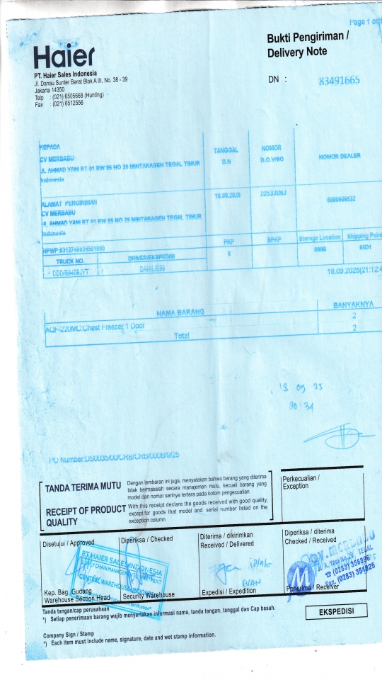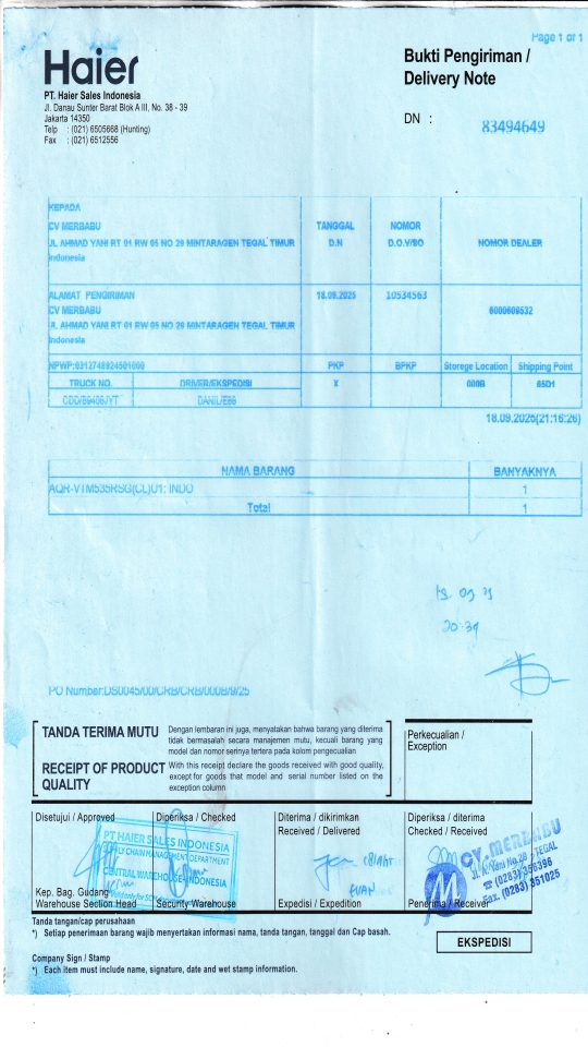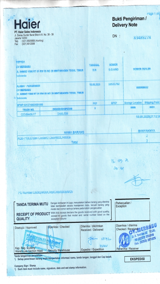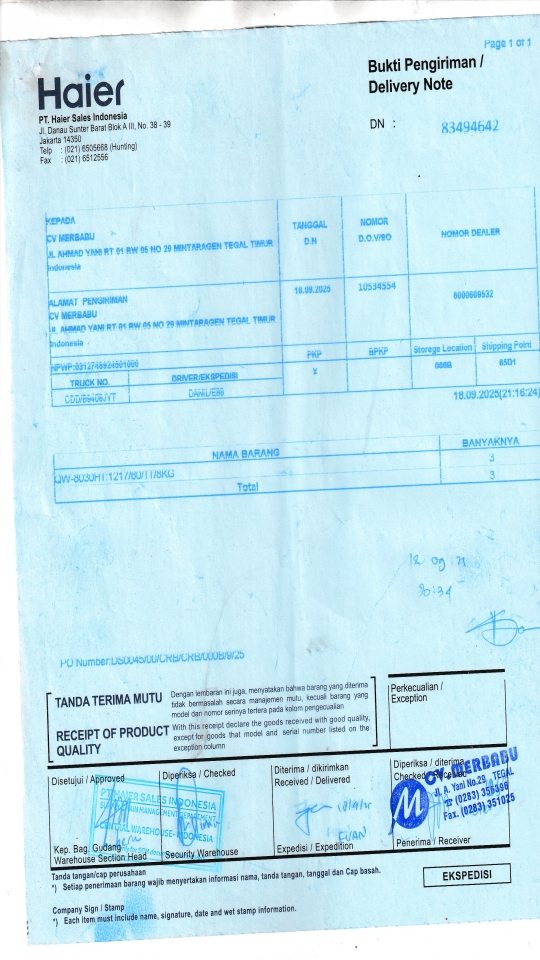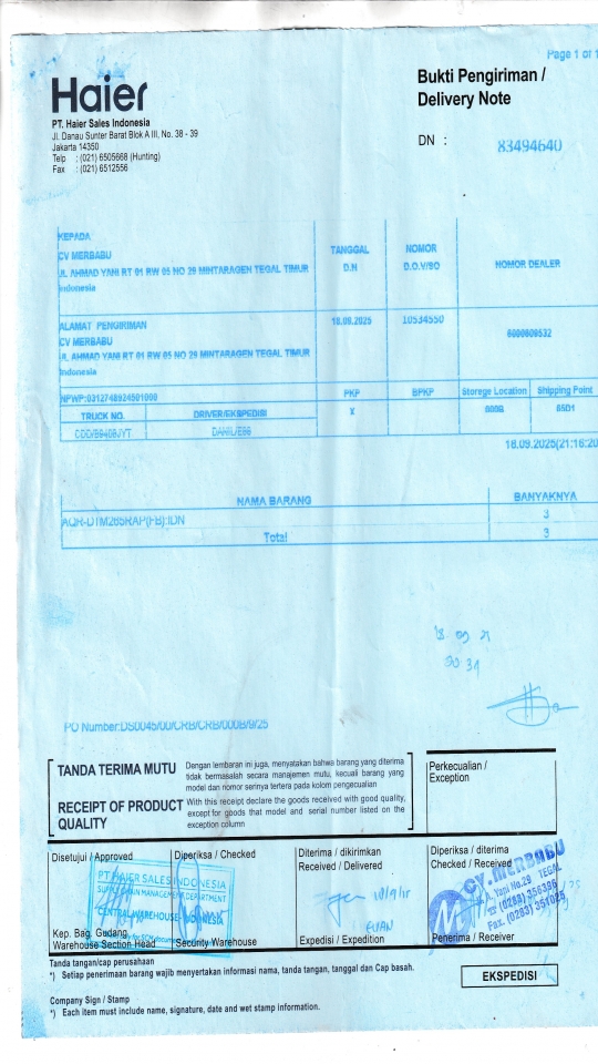 | Berangkat, Tiba, Bongkar | 2025-09-19, 2025-09-19, 2025-09-19 |