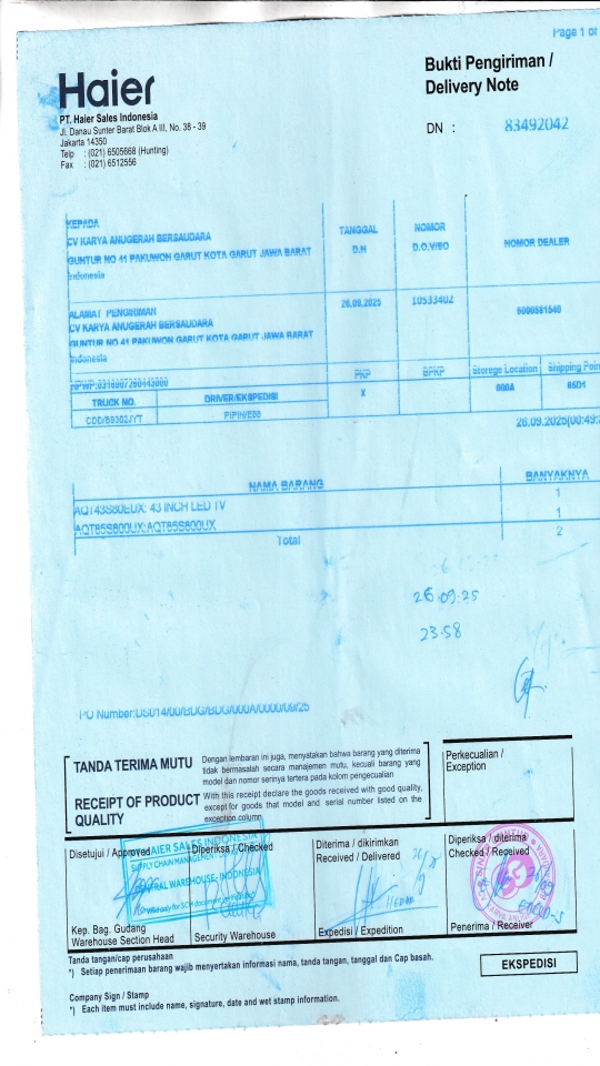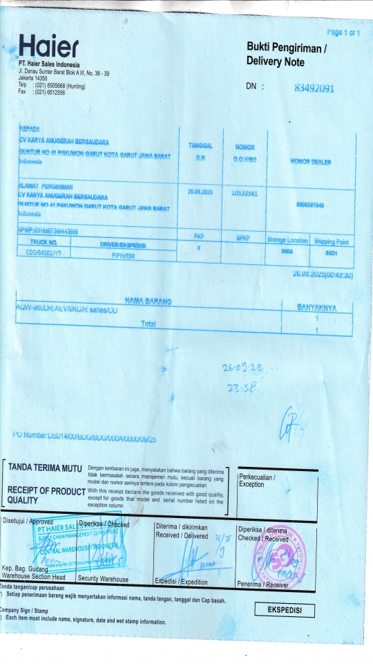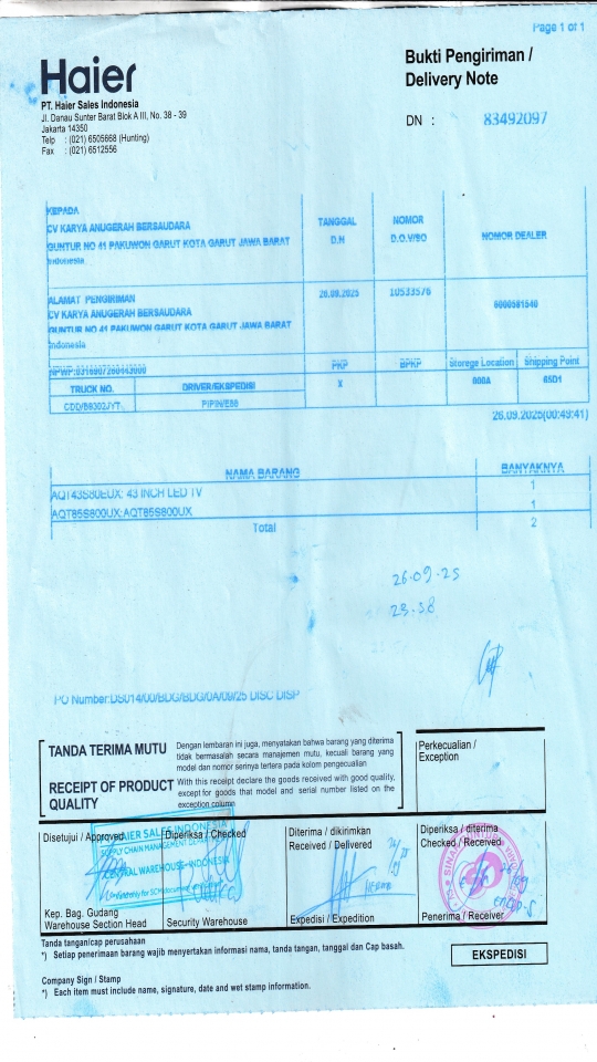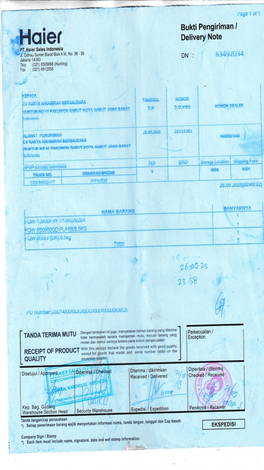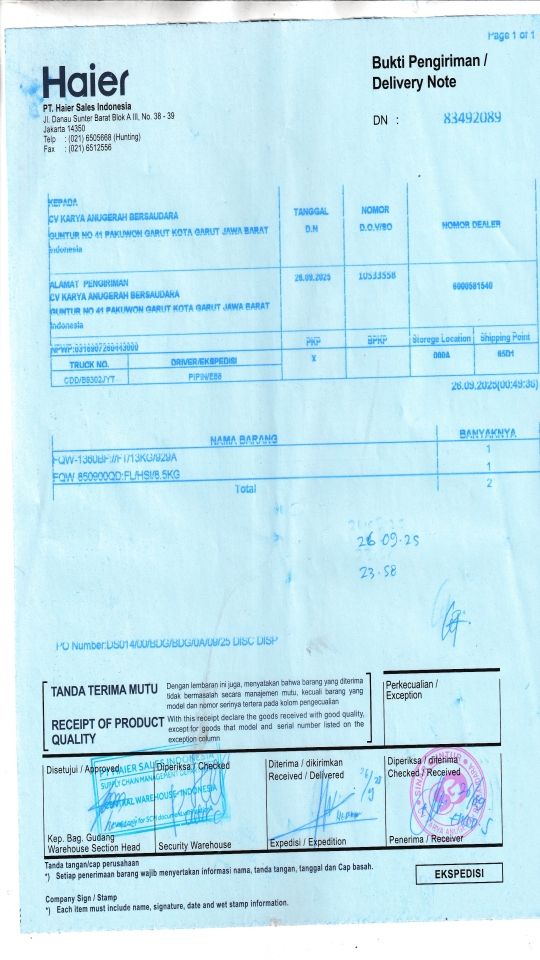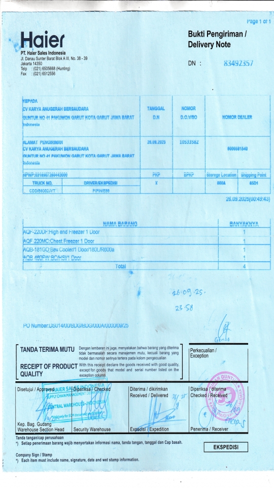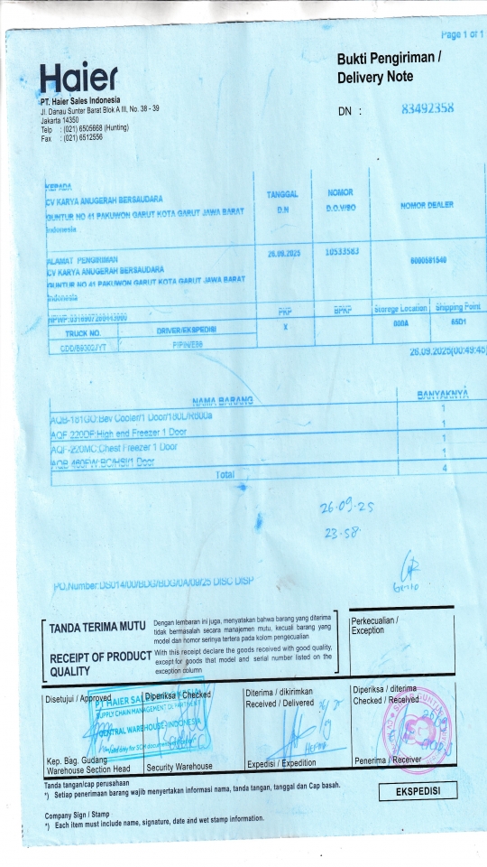 Berangkat, Tiba, Bongkar 2025-09-26, 2025-09-26, 2025-09-26