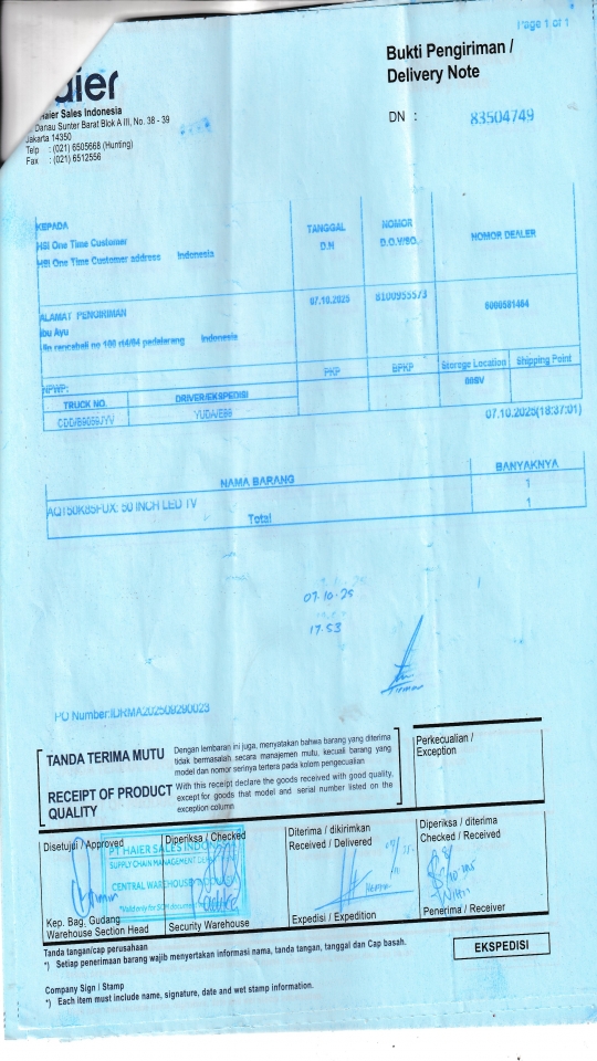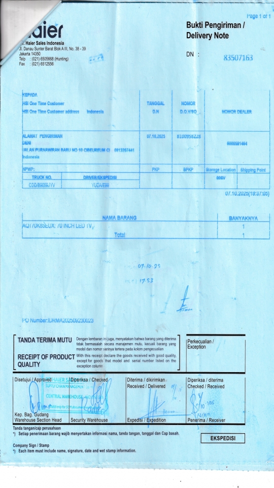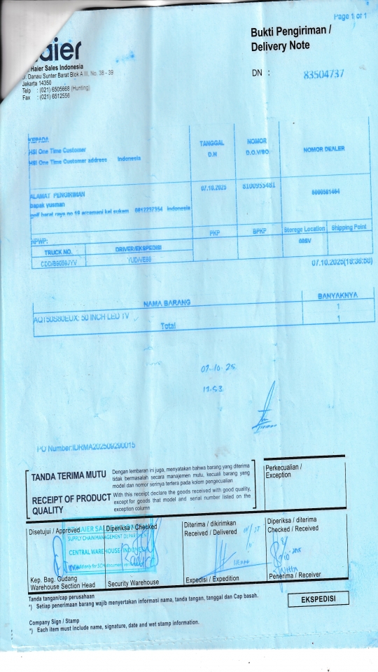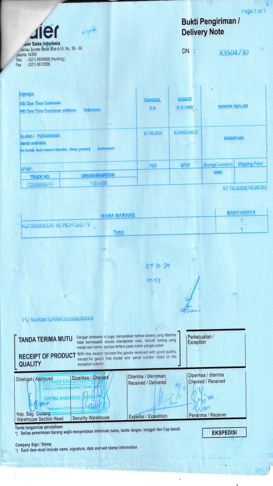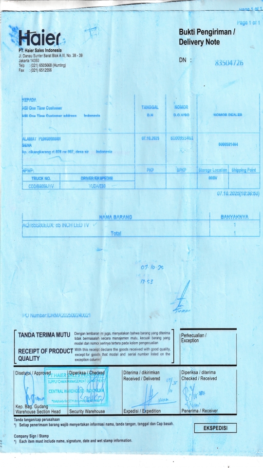 | Berangkat, Tiba, Bongkar | 2025-10-08, 2025-10-08, 2025-10-08 |
