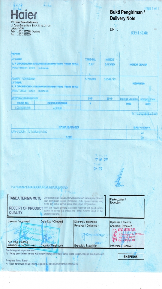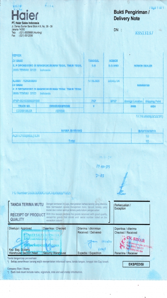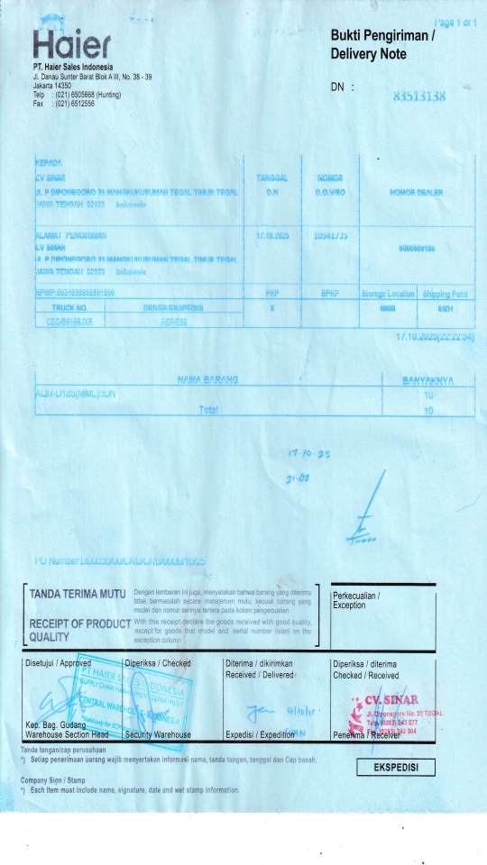 | Berangkat, Tiba, Bongkar | 2025-10-18, 2025-10-18, 2025-10-18 |