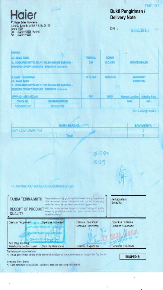 Customer PT. HAIER SALES INDONESIA