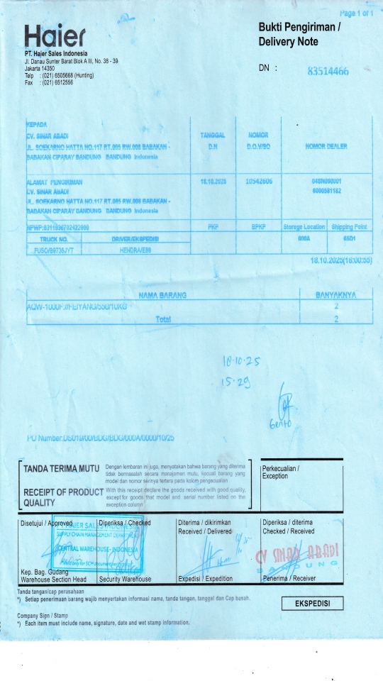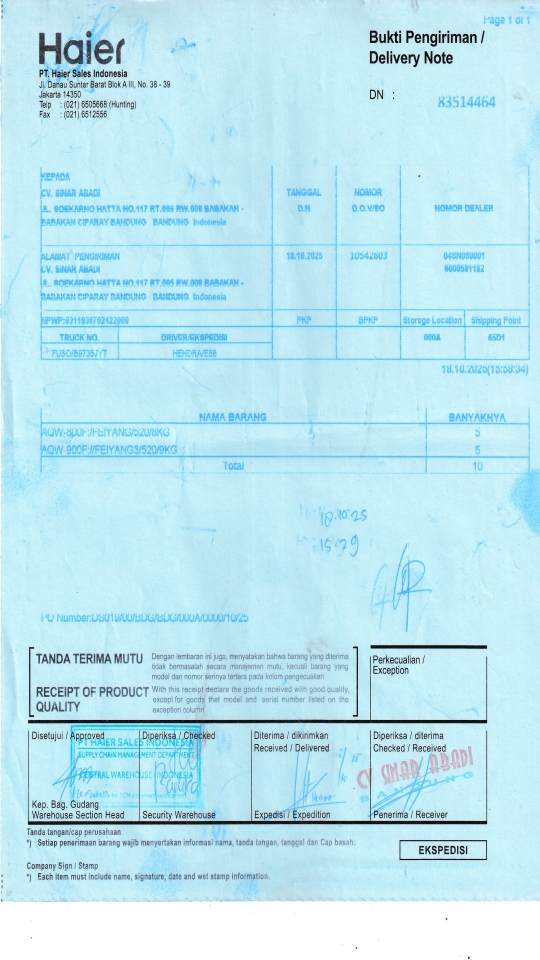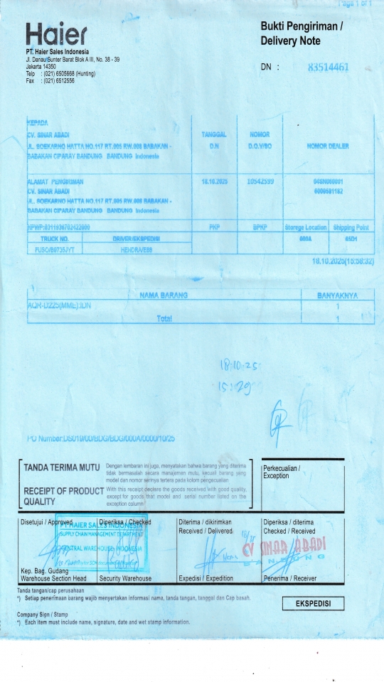 Berangkat, Tiba, Bongkar 2025-10-20, 2025-10-20, 2025-10-20