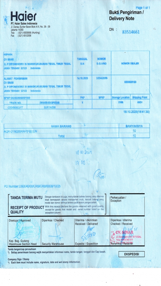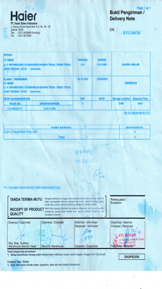 | Berangkat, Tiba, Bongkar | 2025-10-20, 2025-10-20, 2025-10-20 |